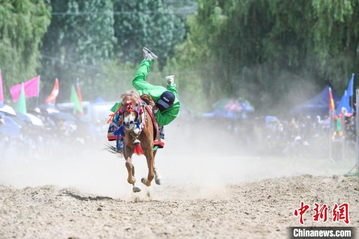 7月24日,在西藏自治區(qū)拉薩市曲水縣曲水鎮(zhèn)茶巴朗村村民身著節(jié)日盛裝進行賽馬和馬術(shù)表演歡度“望果節(jié)”。“望果節(jié)”已有1500多年的歷史,是國家級非物質(zhì)文化遺產(chǎn),流行于西藏拉薩、日喀則、山南等地。