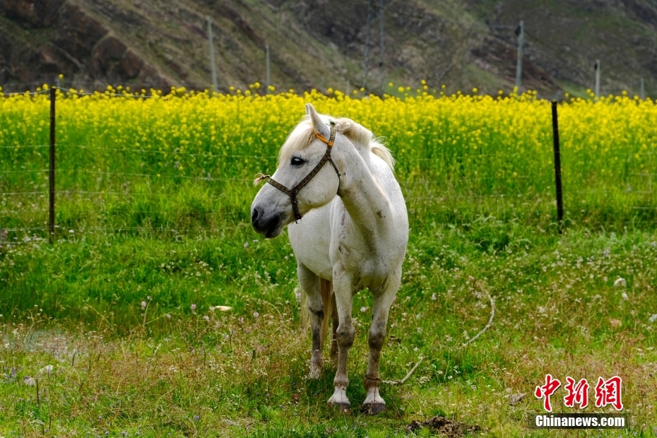 7月24日,西藏拉薩,國道109線一側的油菜花田。