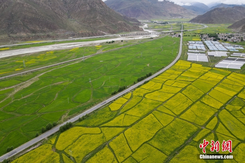 7月24日,航拍西藏堆龍曲沿岸的油菜花田與青稞地。堆龍曲是拉薩河支流,源頭位于念青唐古拉山脈西南,流經羊八井、德慶鎮(zhèn),至堆龍德慶區(qū)注入拉薩河干流。近日,西藏堆龍曲兩岸油菜花盛放,呈現(xiàn)出一幅“高原不與四時同、七月才開二月花”的美麗景象。駕車經過或漫步其間,高原油菜花散發(fā)出陣陣花香,像是“春天的味道”。