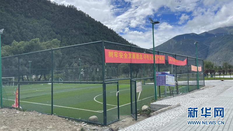 圖為才召村新修的五人制足球場(chǎng),供村里的孩子們踢足球。新華網(wǎng) 陳穎 攝