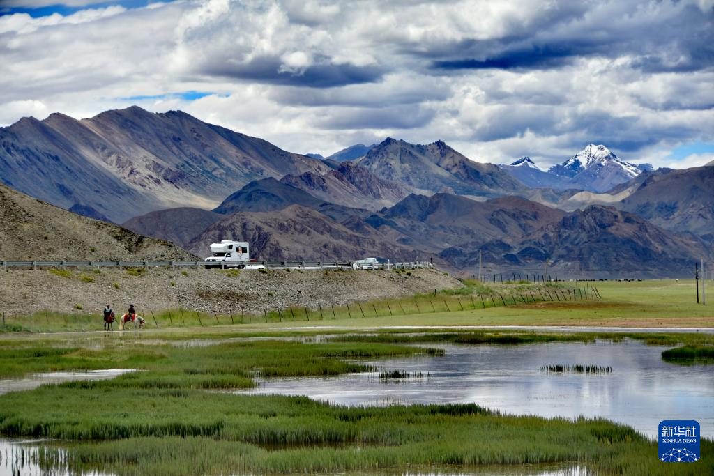 班公湖遠處的雪山(7月28日攝)。新華社發(fā) (尚路航攝)