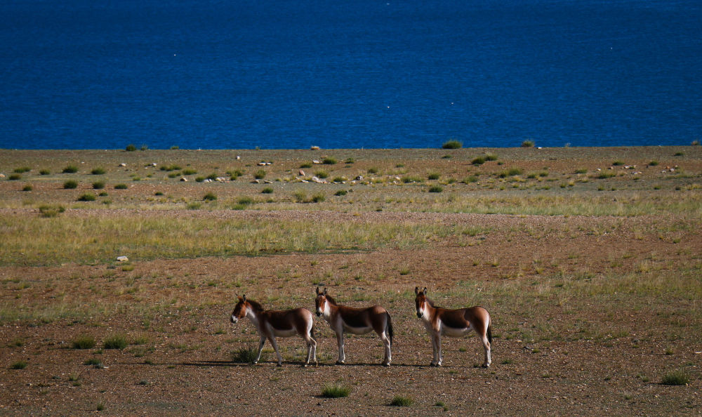拉昂錯(cuò)位于西藏阿里地區(qū)普蘭縣東北部的霍爾鄉(xiāng),湖面海拔4573米。拉昂錯(cuò)與圣湖瑪旁雍錯(cuò)相鄰,僅以一條公路相隔,遠(yuǎn)處岡底斯山脈的主峰岡仁波齊巍峨聳立。藏野驢是國家一級(jí)保護(hù)動(dòng)物,青藏高原特有物種,近年來隨著西藏生態(tài)保護(hù)力度不斷增大,藏野驢數(shù)量由原來的5萬只左右增加至現(xiàn)在的約9萬只。