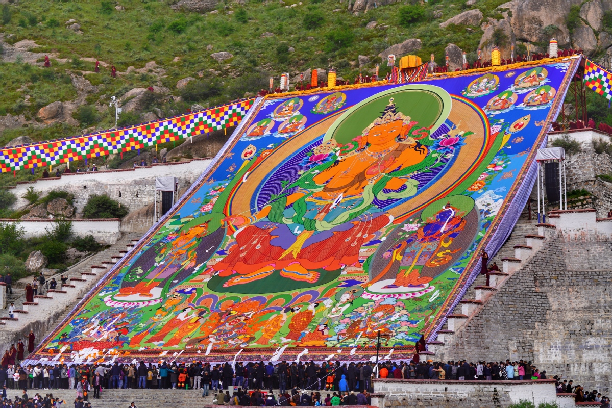 8月16日,西藏拉薩哲蚌寺舉行展佛活動。西藏日報社 平措次仁 攝