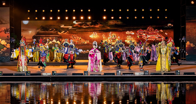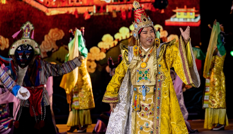在2023拉薩雪頓節(jié)開(kāi)幕式文藝演出上,京劇藏戲《文成公主》再次上演(8月16日攝)。丁增尼達(dá) 攝