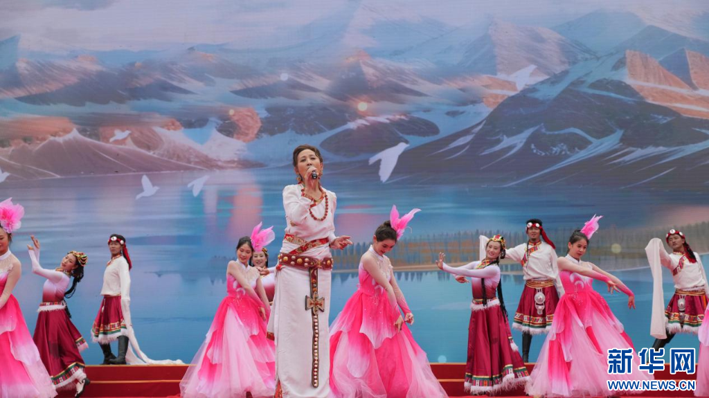 圖為央金蘭澤在演唱《愛(ài)在思金拉錯(cuò)》(8月24日攝)。新華網(wǎng) 柑丹鴦琦 攝