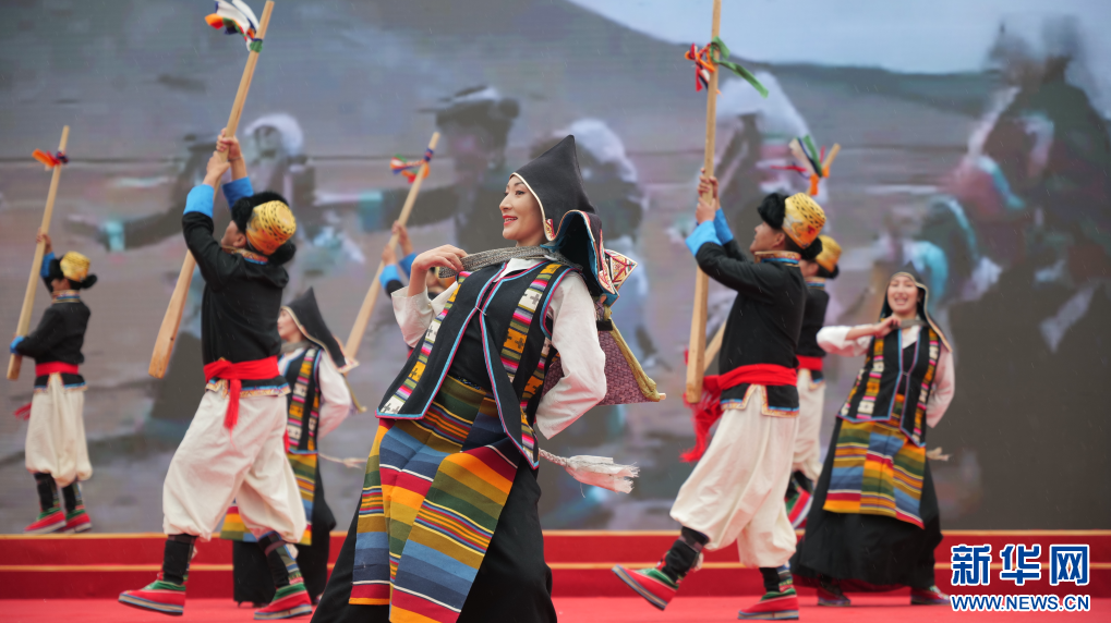圖為隆子縣藝術(shù)團(tuán)帶來(lái)的《扎西康桑舞蹈》(8月24日攝)。新華網(wǎng) 柑丹鴦琦 攝