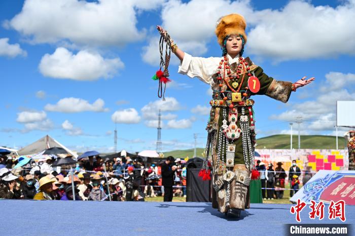 2023年8月,那曲恰青賽馬節(jié)上旅游形象大使比賽。中新社記者 趙朗 攝