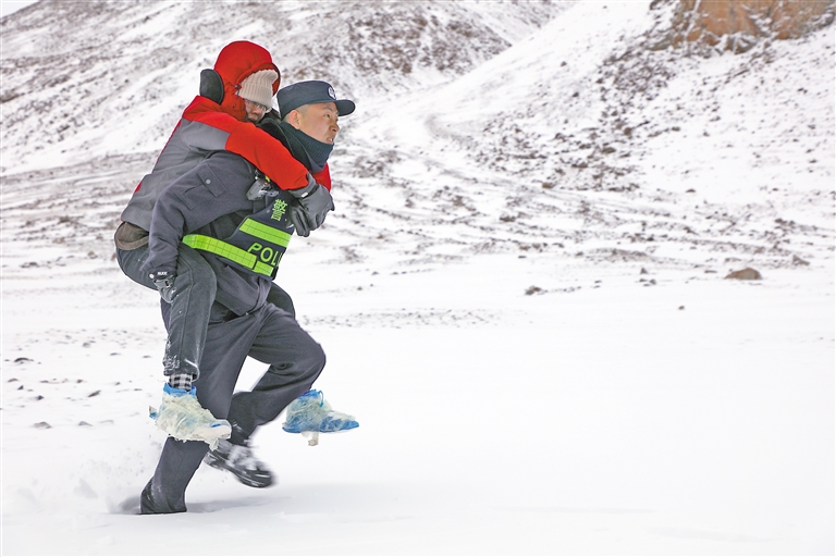 阿里邊境管理支隊(duì)塔爾欽邊境派出所民警救援雪中受困群眾。圖片由塔爾欽邊境派出所提供