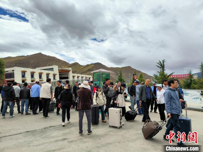 9月23日,乘坐高原復(fù)興號(hào)動(dòng)車(chē)組列車(chē)的乘客抵達(dá)拉薩火車(chē)站。中新社記者 江飛波 攝