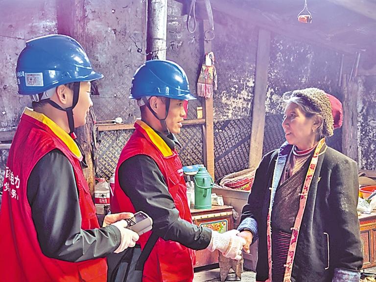 圖為國(guó)網(wǎng)西藏電力黨員服務(wù)隊(duì)來(lái)到卓嘎(右)的放牧用房,了解用電情況。記者 丹增平措 攝