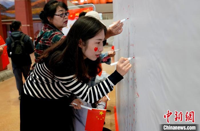 “‘祖國在我心中’的活動太有意義了,必須要參與、拍照?!辈┪镳^大廳里,參觀游客紛紛點贊、參與活動,歡度國慶。