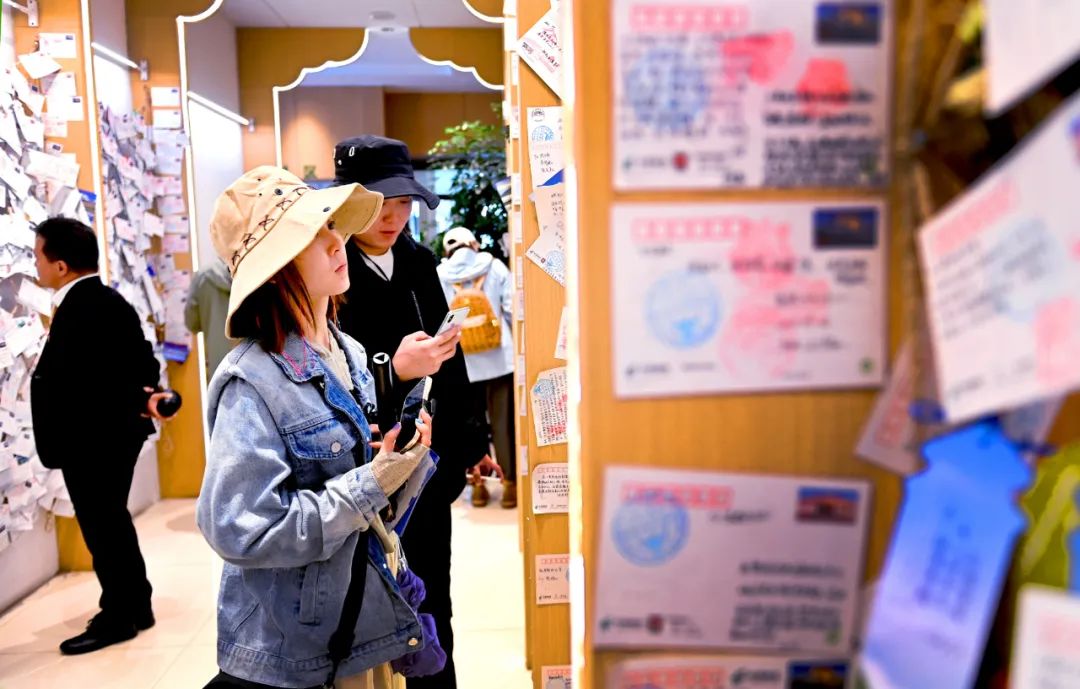 在時光郵局的留言墻上,掛滿了沒有寄出的明信片,每一張都包含著一個故事。郵局的工作人員會按照這些明信片約定的時間,將一封封穿越時空的信寄出。