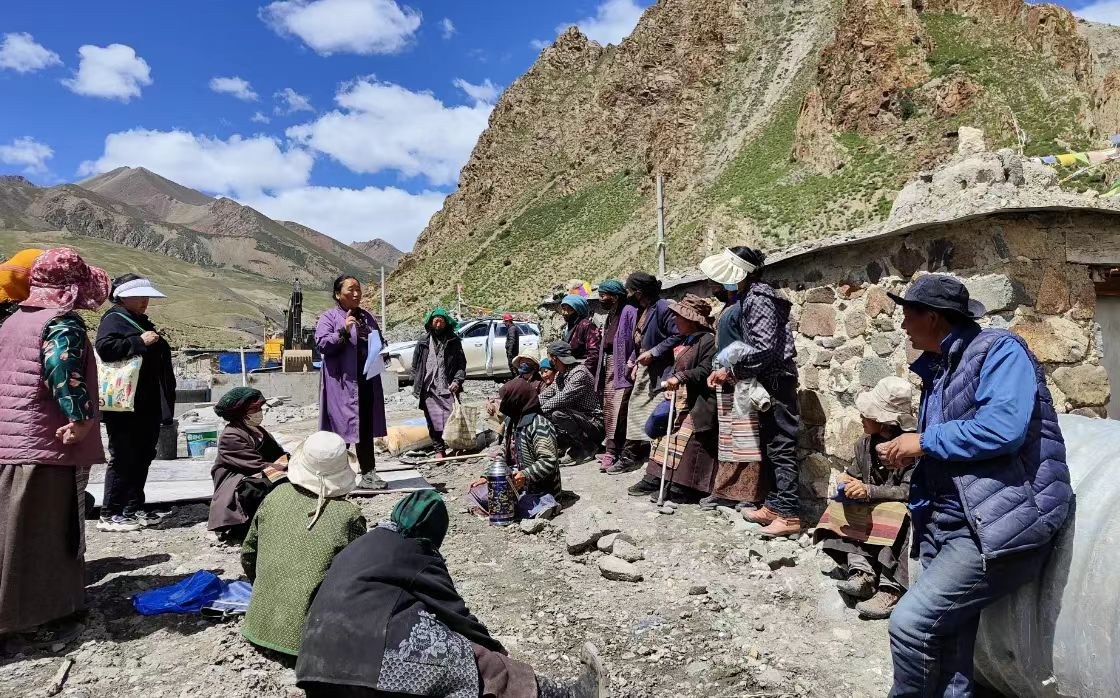 9月初,在雪熱村,縣農(nóng)業(yè)農(nóng)村局的畜牧業(yè)專技人員卓嘎結(jié)合鑄牢中華民族共同體意識和“三個(gè)意識”,宣講草原生態(tài)補(bǔ)獎(jiǎng)?wù)摺⑴Q虺鍪垩a(bǔ)貼、農(nóng)機(jī)具購置補(bǔ)貼等與群眾生產(chǎn)生活息息相關(guān)的政策,炎熱的天氣絲毫不影響群眾聆聽宣講的熱情。