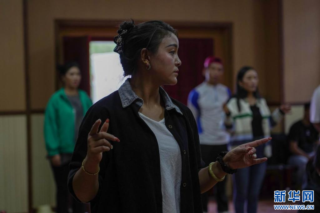 圖為覺木隆藏戲團排練《白瑪文巴》(9月26日攝)。新華網(wǎng)發(fā) 司秦菱 攝
