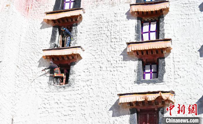 西藏布達(dá)拉宮18日迎來新一季粉刷,按照慣例,每季粉刷將在藏歷9月22日“神降節(jié)”前完成。