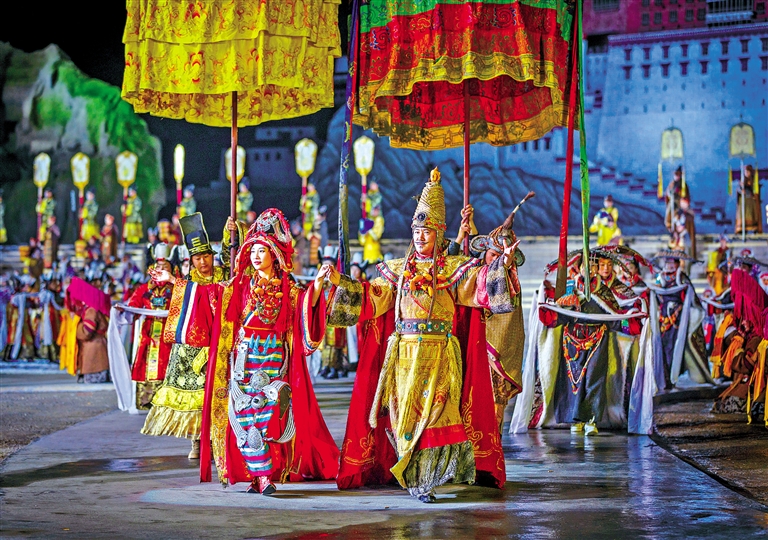 十年匠心成就雪域經(jīng)典。2023年,《文成公主》大型史詩劇已走到了第十一個(gè)演出季,累計(jì)演出場次超1800場,演出及旅游配套累計(jì)接待觀眾超400萬人次。游布達(dá)拉宮、逛八廓街、觀《文成公主》,已成為拉薩游的標(biāo)配。