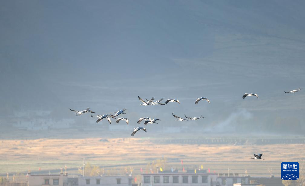 10月下旬,西藏自治區(qū)拉薩市林周縣迎來(lái)2023年第一批越冬黑頸鶴。它們將在這里一直待到來(lái)年三四月份。黑頸鶴是國(guó)家一級(jí)保護(hù)動(dòng)物,主要棲息在海拔2500米至5000米的高原、草甸、沼澤地帶。拉薩北部的林周縣平均海拔約4200米,是黑頸鶴的主要越冬地之一。
