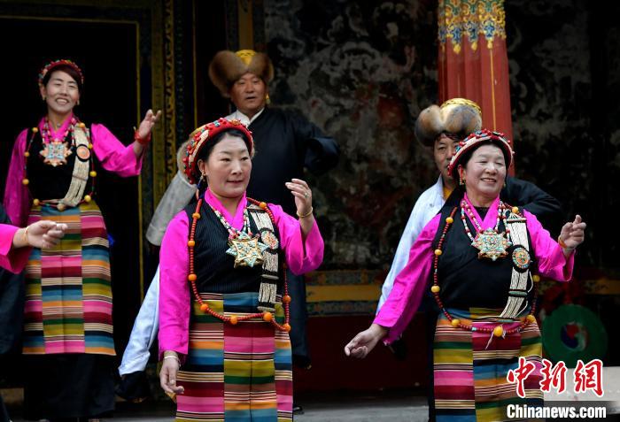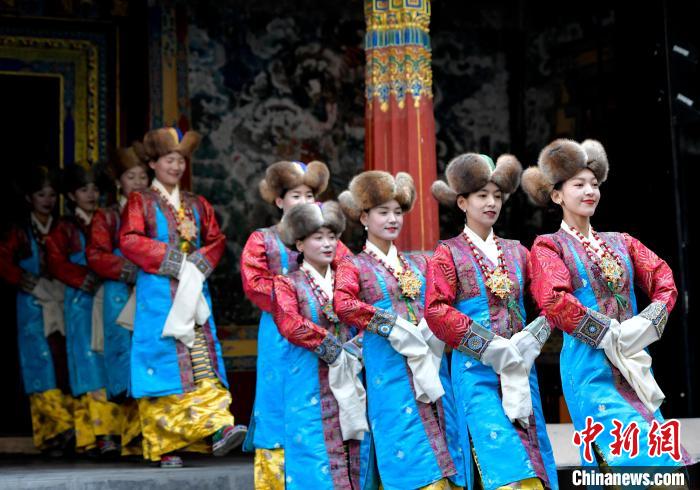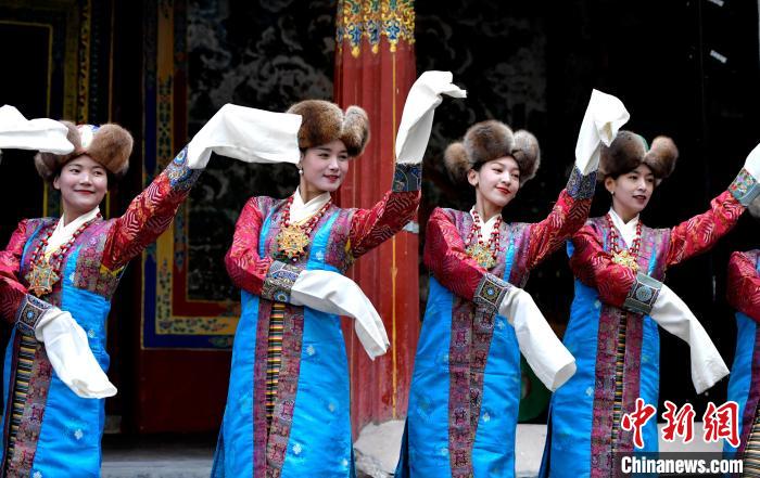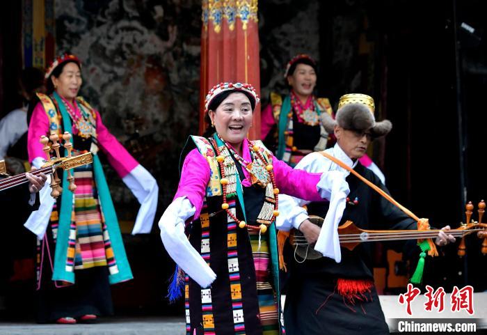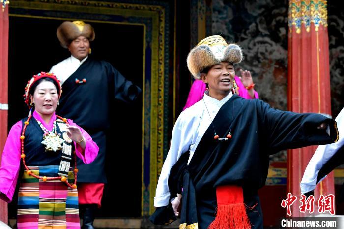 據(jù)悉,堆諧最早流傳于日喀則,是由扎念琴樂(lè)器伴奏的舞蹈。扎念琴是堆諧“邊彈、邊唱、邊舞”表演風(fēng)格形成的關(guān)鍵。作為日喀則市桑珠孜區(qū)的重要非遺項(xiàng)目之一,堆諧以其獨(dú)特的表演形式,受到了眾多觀眾的喜愛(ài)。日喀則市諧欽則起源于1883年,其韻調(diào)古樸,表現(xiàn)獨(dú)特,顯示出濃郁的西藏風(fēng)景和鮮明的地方特色。諧欽演員們精湛的表演技藝、華麗的戲服,將古老的西藏歌舞藝術(shù)完美呈現(xiàn)在這座古建筑前。