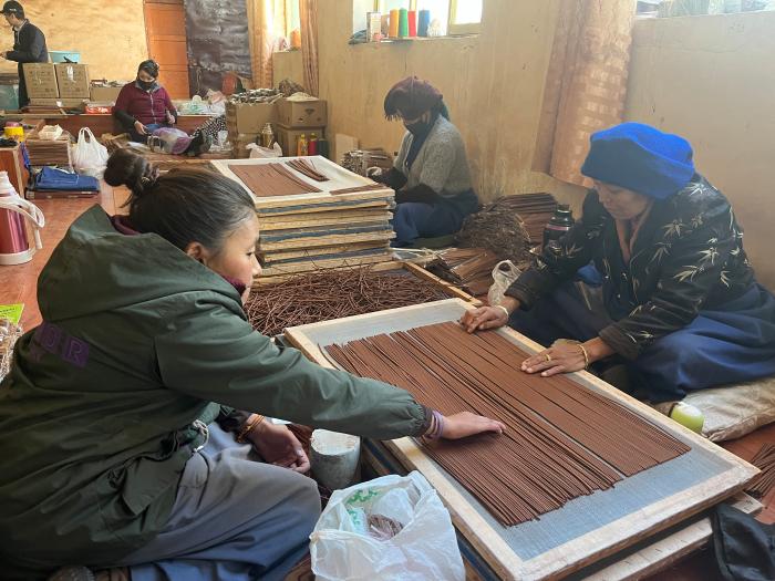 旦增曲扎的公司員工有近30人,大部分為尼木縣當?shù)鼐用?。?jù)旦增曲扎介紹,廠子里的員工在農(nóng)忙時可以請假回家,農(nóng)閑時去廠里做香,既保證了農(nóng)業(yè)生產(chǎn),又能獲得一份穩(wěn)定的收入。