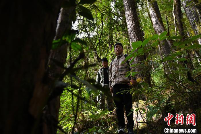 3名管護(hù)員到達(dá)格當(dāng)鄉(xiāng)最深處的一片原始森林。正值深秋,對(duì)于管護(hù)員們來說是最好的季節(jié),雨季結(jié)束,蚊蟲也少。他們僅帶了背包和道具,管護(hù)站副站長索朗羅珠說:“今天不用過夜,帶的裝備很簡單?!?/p>