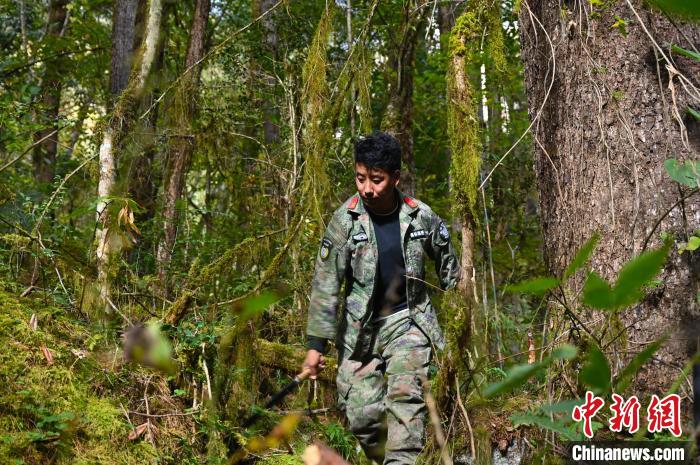 走進(jìn)原始森林,無路可言,他們用刀具清出一條通道來。地形復(fù)雜,灌木叢生,大家深一腳淺一腳前進(jìn),巡邏時(shí)還得注意蛇蟲。上坡下坡間,索朗頓珠是速度最快的,外號(hào)“山羊”由此得來。