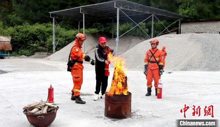 資料圖為察隅縣森林消防中隊指戰(zhàn)員向民眾教授滅火器的使用方法。察隅縣森林消防中隊 供圖