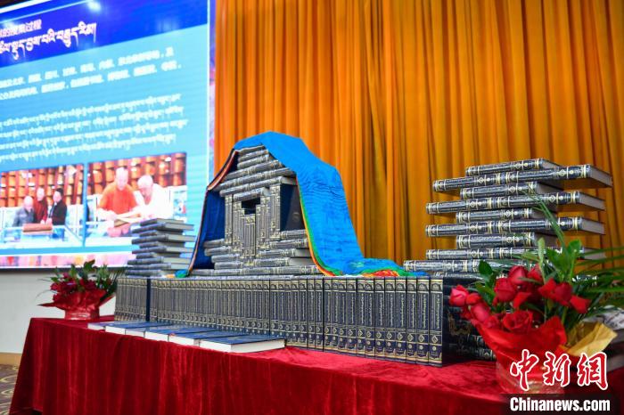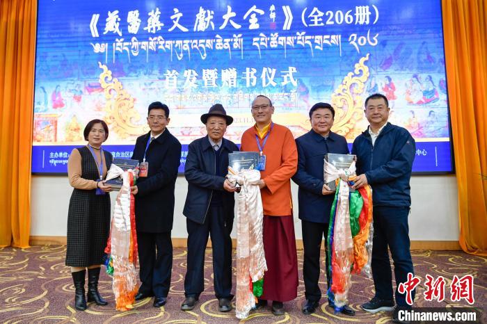 圖為《藏醫(yī)藥文獻大全》首發(fā)暨贈書儀式現(xiàn)場。貢嘎來松 攝