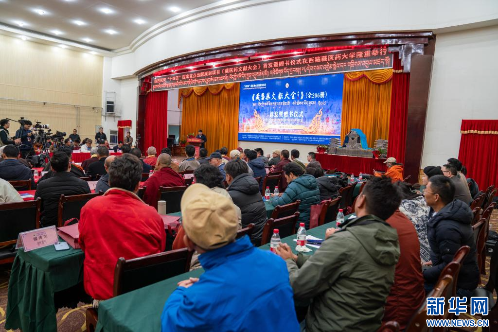 11月16日,“十四五”國家重點出版規(guī)劃項目《藏醫(yī)藥文獻大全》首發(fā)暨贈書儀式現(xiàn)場。新華社記者 旦增尼瑪曲珠 攝