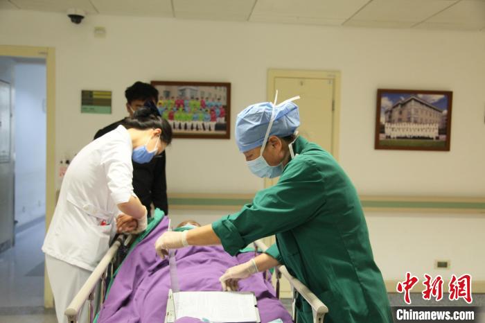 11月21日,藏族女孩澤巴永宗在北京接受脊柱側(cè)凸矯形手術(shù)前,醫(yī)務(wù)人員為其核對信息。中新網(wǎng)記者 朱賀 攝
