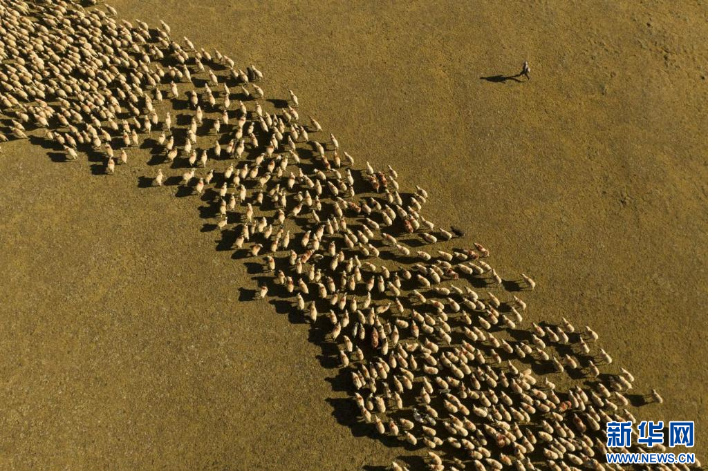 在西藏措美縣境內(nèi)拍攝的羊群(無人機照片)。新華網(wǎng) 旦增努布 攝