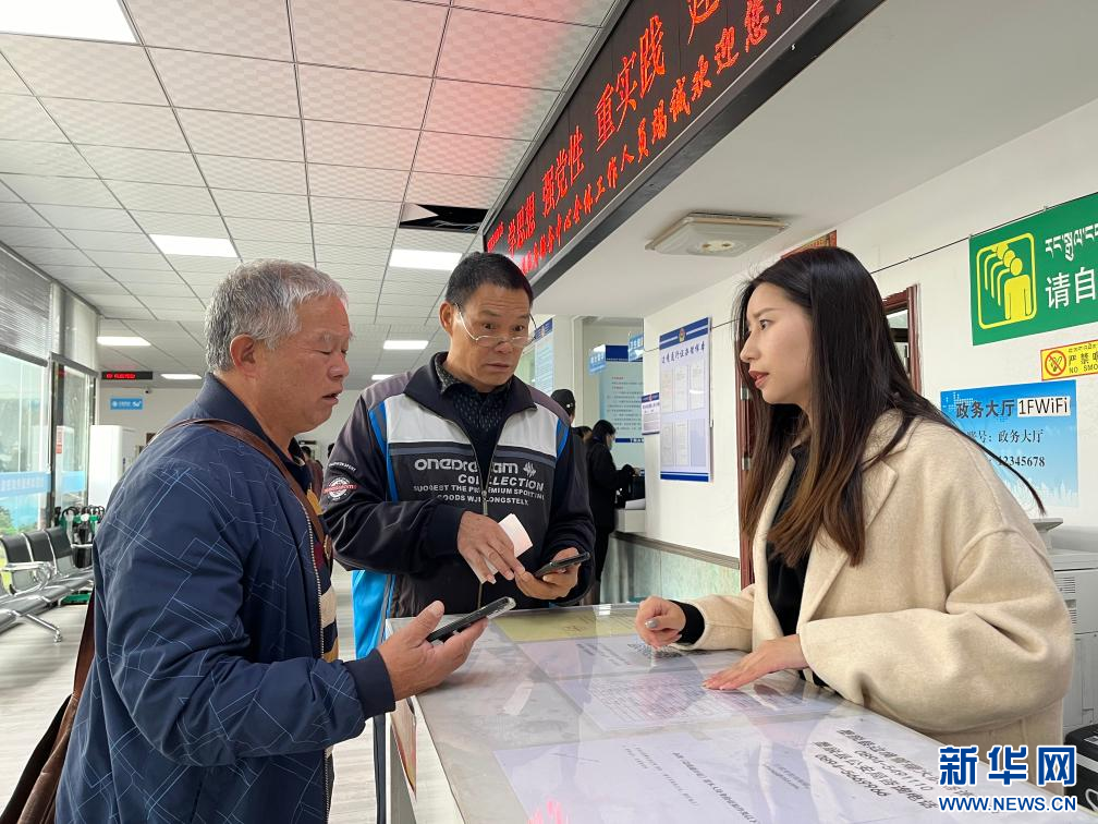 波密縣“無差別受理綜合窗口”工作人員正在為游客講解辦事流程(10月16日攝)。新華社發(fā)(熊思雅)