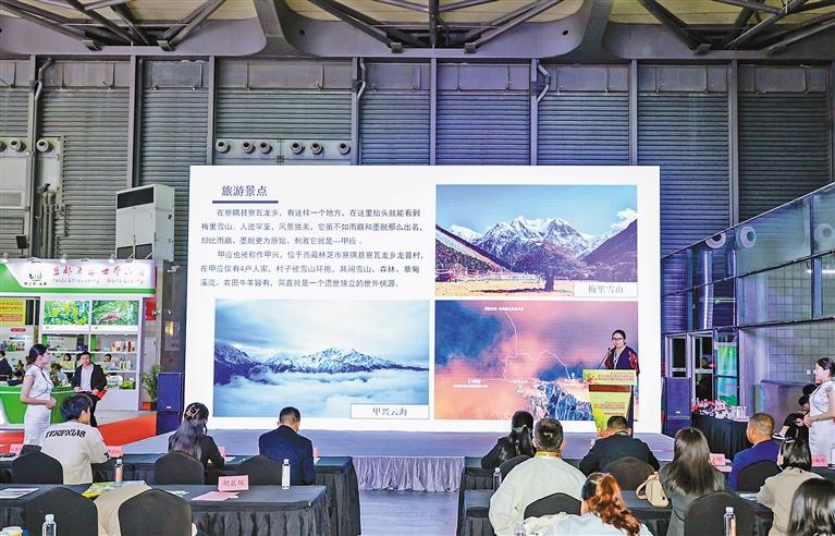 察隅縣農業(yè)農村局工作人員推介察隅獼猴桃產業(yè)和茶葉產業(yè)。