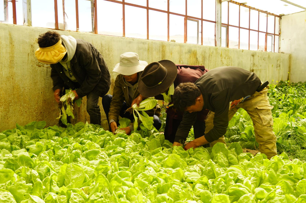 自治區(qū)交通運(yùn)輸廳駐熱扎村工作隊(duì)依托蔬菜大棚為43戶(hù)群眾分發(fā)新鮮蔬菜。