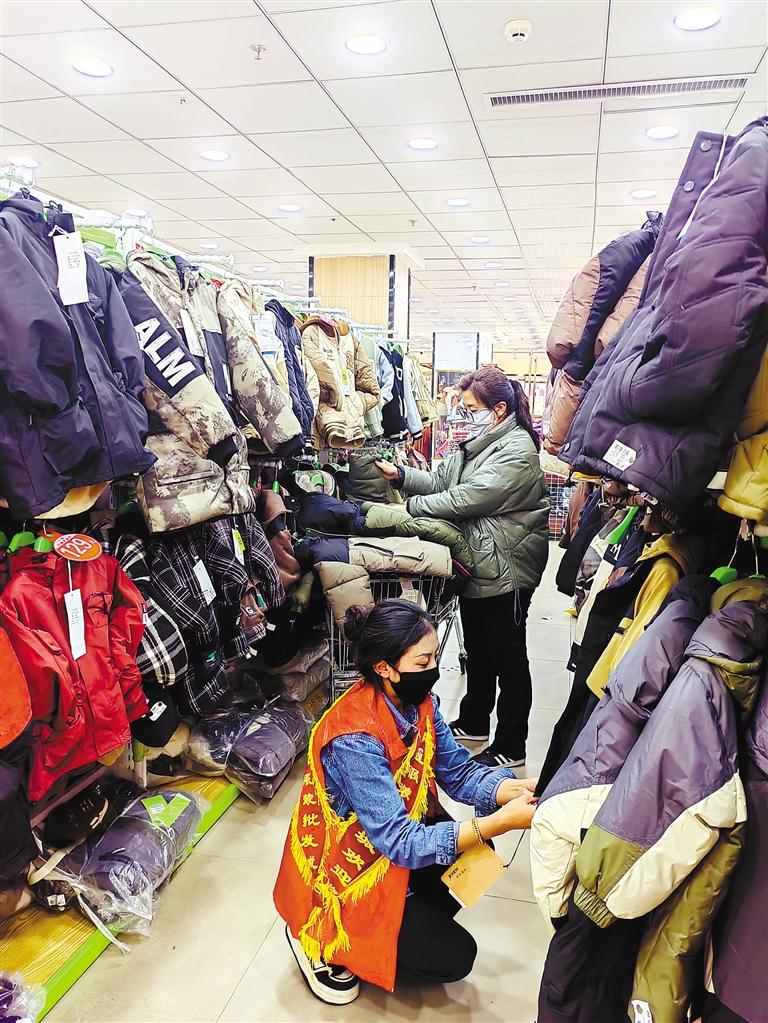那曲市安多縣志愿者受旦增達瓦委托為困難學生購買新外套。