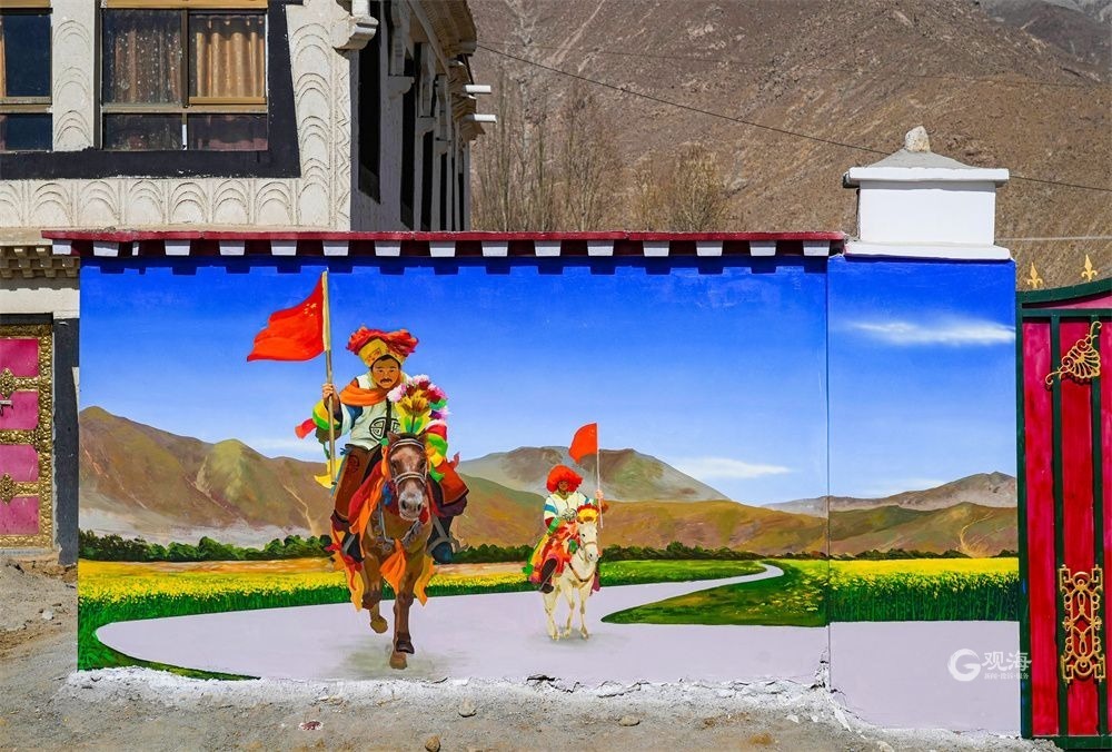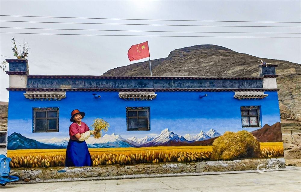 鄉(xiāng)村振興、民族團結、道路安全、移風易俗、傳統(tǒng)文化、現代文明、高原特色……各式各樣的場景,現在已經出現在了桑珠孜區(qū)東嘎鄉(xiāng)、聶日雄鄉(xiāng)、曲美鄉(xiāng)、納爾鄉(xiāng)部分鄉(xiāng)村的道路兩旁。一幅幅栩栩如生的手繪墻畫,“爬上”了錯落有致的藏式小樓,“登上”了一座座藏式院落的院墻,成為一道道亮麗的風景線。在干凈整潔的鄉(xiāng)村道路旁,錯落有致的農家庭院上,粉刷一新的墻面上色彩艷麗的大型墻繪以直觀的畫面和村民喜聞樂見的形式,將鄉(xiāng)村振興、民族團結、移風易俗等內容與農村景觀有機結合,讓一堵堵“牛糞墻”有了新活力吸引著過往路人的目光。一幅幅栩栩如生的畫面、一段段民族團結的故事,與鄉(xiāng)村環(huán)境融為一體,形成了“村中有畫、畫中有村”的整體風貌;一面面文明和諧、多彩絢麗的彩繪墻,猶如一張張靈動的文明標簽,將黨的方針政策、藏族同胞的幸福生活活靈活現地展示在墻上,不僅扮靚了鄉(xiāng)村美景,也傳遞了向上向善向美的正能量,處處都能讓人感受到美麗鄉(xiāng)村文明發(fā)展的濃郁氣息。
