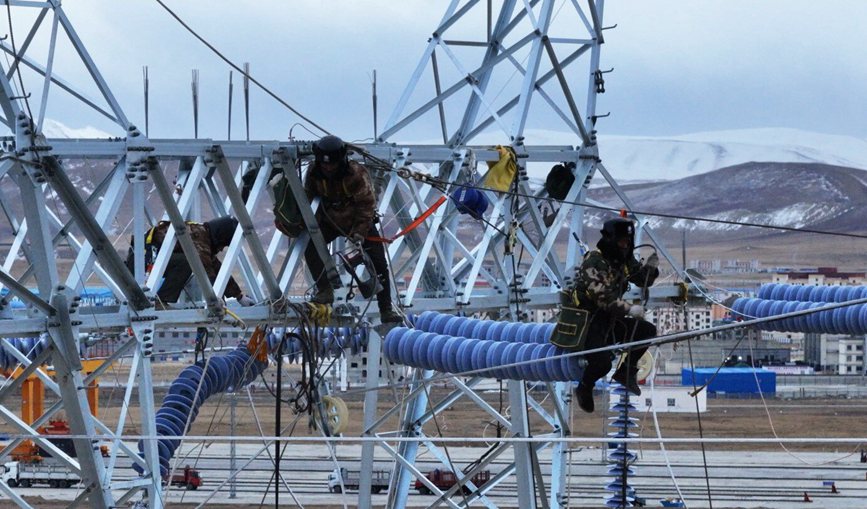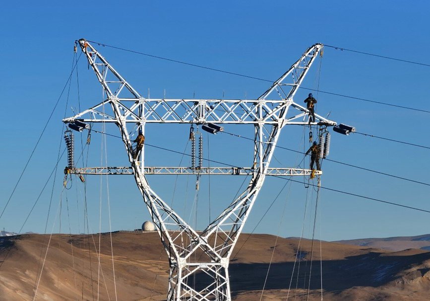 “還有10米,5米,導(dǎo)線到位!”12月12日,18時,隨著對講機傳出的N5號塔位導(dǎo)線到位,標(biāo)志著海拔4600米的西藏自治區(qū)那曲市色尼區(qū)國能100兆瓦風(fēng)電110千伏送出工程全部貫通。