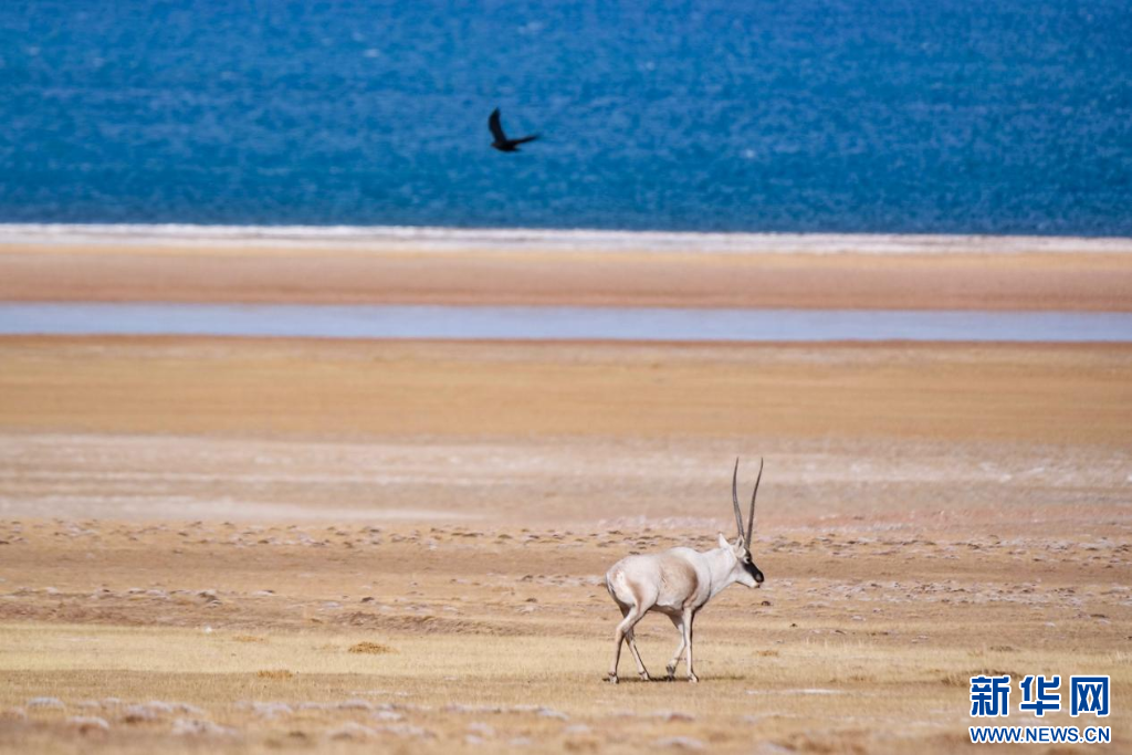 冬日的色林錯,景色怡人,藏羚羊在色林錯畔覓食,形成一幅生動美麗的高原生態(tài)畫卷。