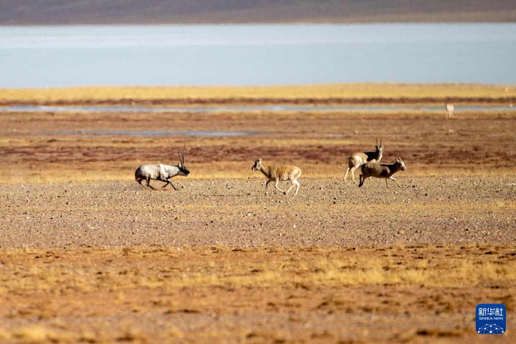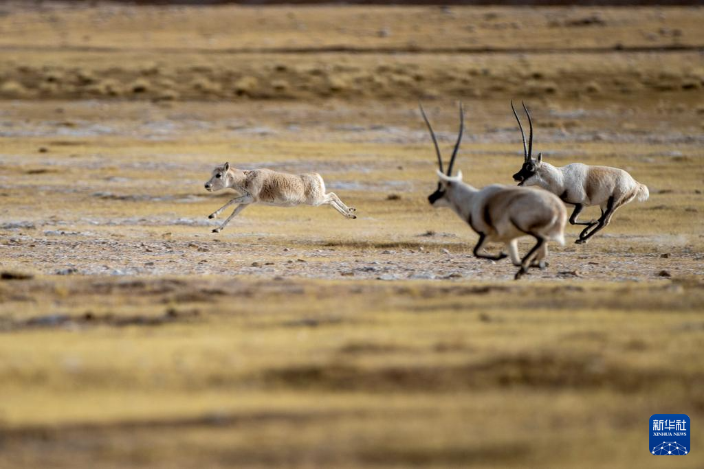 在羌塘國家級自然保護區(qū),兩只雄性藏羚羊在追逐雌性(12月16日攝)。新華社記者 姜帆 攝