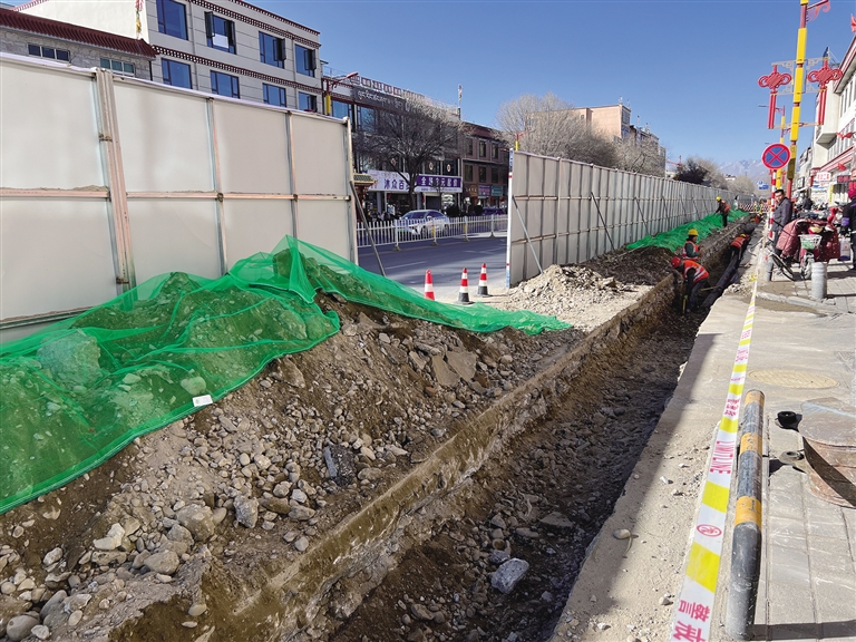時值深冬,拉薩城中有一群人正如火如荼地忙碌著。12月18日,記者來到納金路,工人們正在進行路面燃氣管道改造。挖掘的泥土被綠色網(wǎng)蓋住,并未四處飛揚,剛澆筑的混凝土都鋪上厚厚的棉被以達到養(yǎng)護效果。四川佳成建設有限公司負責此次路面項目,現(xiàn)場管理陳文韜告訴記者:“為了盡快完成工作,還市民一條通暢的道路,我們已經(jīng)將工人分為24小時3班制,在保證安全的前提下加快施工進度,預計在12月31日左右完成路面的工作?!标愇捻w還表示,路面大部分工程都是通過人工挖掘,噪音不大。如遇見需要使用機器的情況,也會在白天施工,晚上10點前必須停止,爭取做到不給居民的生活帶來困擾。