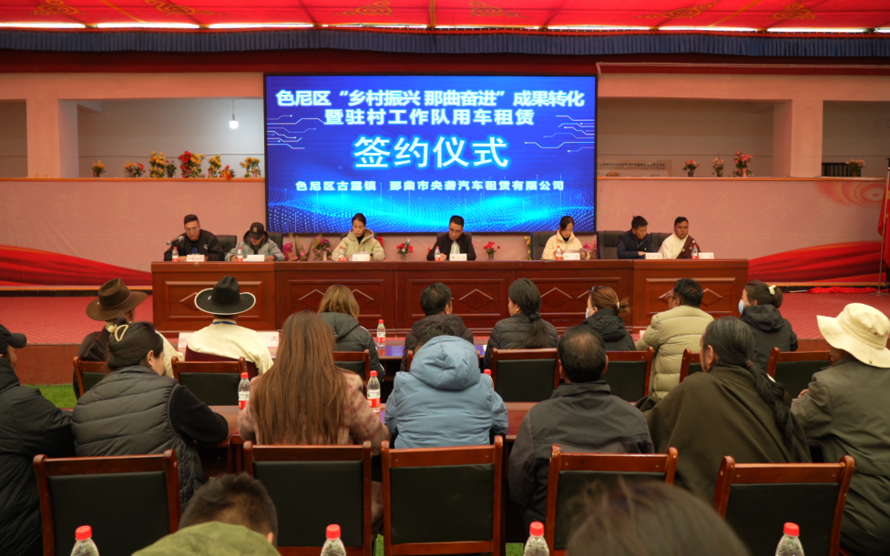 那曲市色尼區(qū)“鄉(xiāng)村振興 那曲奮進(jìn)”成果轉(zhuǎn)化暨駐村工作隊(duì)用車(chē)租賃簽約儀式。