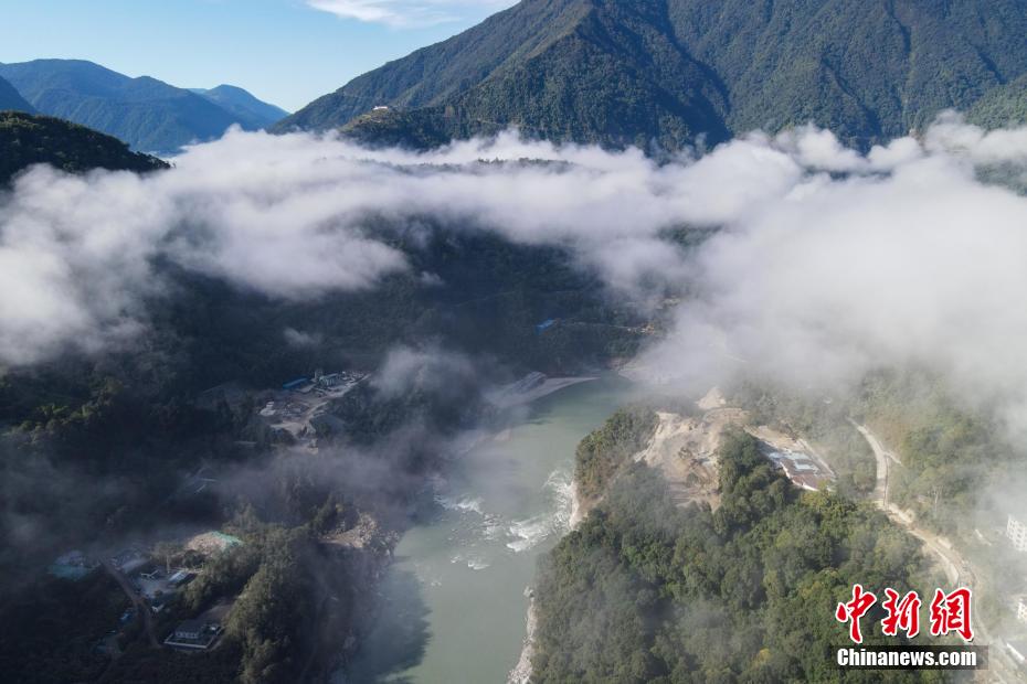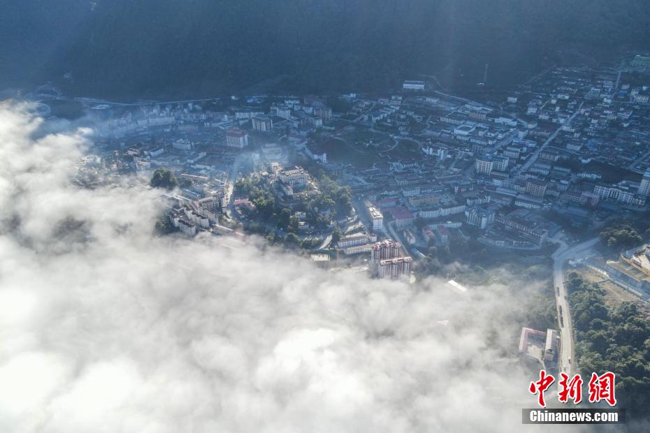 12月22日,雅魯藏布江云海與墨脫縣城。(無人機(jī)畫面)