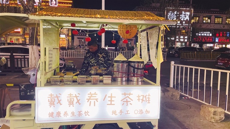 戴新力的攤位推出了玫瑰、桂花、茉莉、黑糖生姜4種口味的奶茶,售價從18元至28元不等。記者看到,玫瑰味的罐罐奶茶,原料除了鮮奶和茶葉,還添加了玫瑰花、紅棗、枸杞等材料。上述原料在陶罐中加熱后,再裝入奶茶杯中可以攜帶飲用?!磅r奶和茶葉中加了紅棗、枸杞,感覺是一杯很健康的奶茶。”點單后在一旁等待的市民李女士說,秋冬季節(jié),超市里的常溫飲料喝起來有點涼,這種熱飲喝起來腸胃更舒服,而且看起來都是一些養(yǎng)生的食材,感覺比較放心。