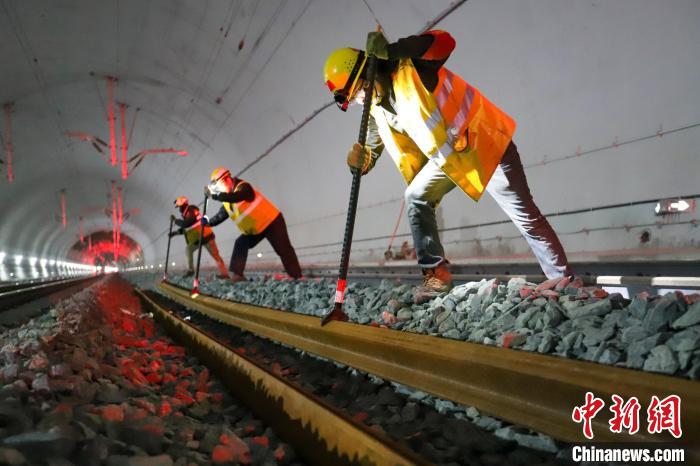 圖為1月1日,西藏拉林鐵路接收新軌作業(yè)現(xiàn)場。拉巴次仁 攝