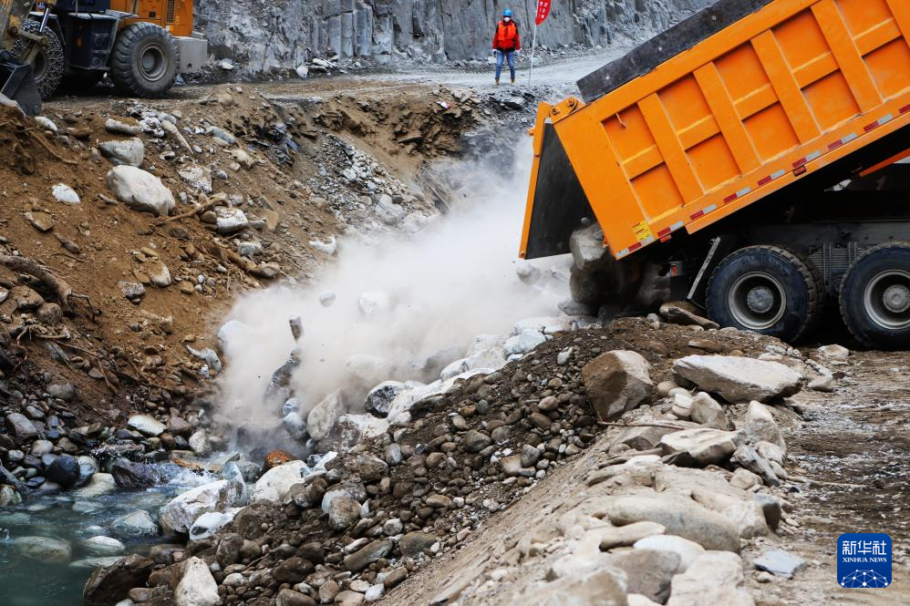 1月3日拍攝的大唐扎拉水電站項(xiàng)目截流施工現(xiàn)場(chǎng)。新華社記者 關(guān)明輝 攝