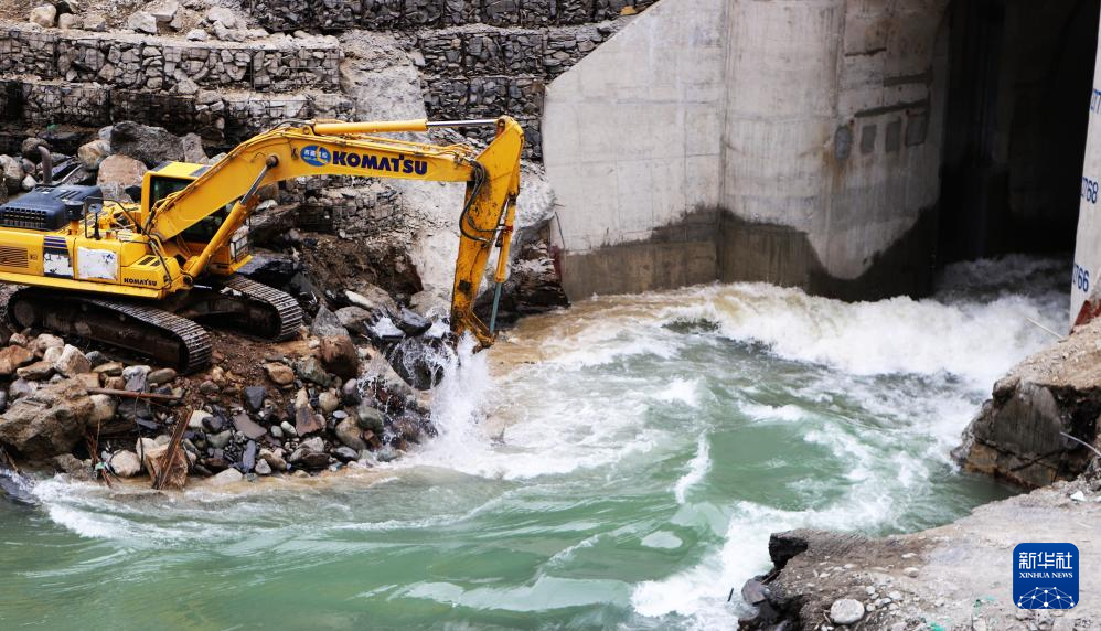 1月3日,一臺(tái)挖掘機(jī)在大唐扎拉水電站項(xiàng)目導(dǎo)流洞入口處施工。新華社記者 劉文博 攝