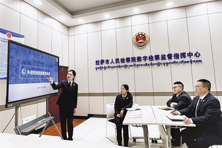 拉薩市人民檢察院檢察官通過數(shù)字檢察監(jiān)督平臺對失信懲戒不當(dāng)線索進(jìn)行人工研判。