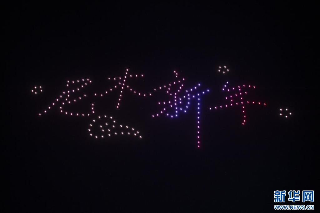 圖為1月5日無人機(jī)表演現(xiàn)場(chǎng)。新華網(wǎng) 旦增努布 攝