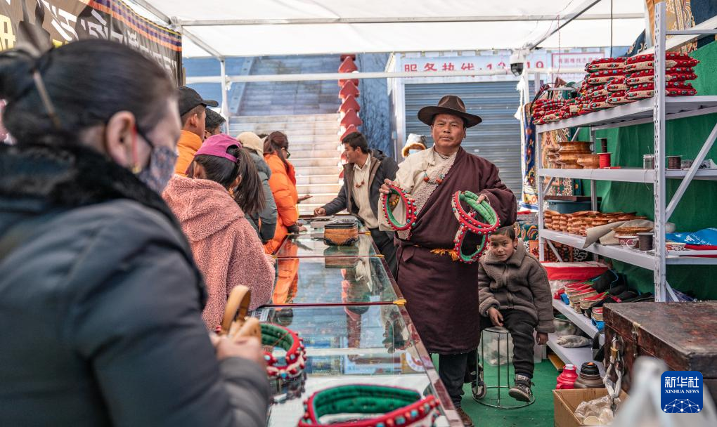 1月9日,商戶在推銷“巴珠”(藏族頭飾)。新華社發(fā)(丁增尼達(dá) 攝)