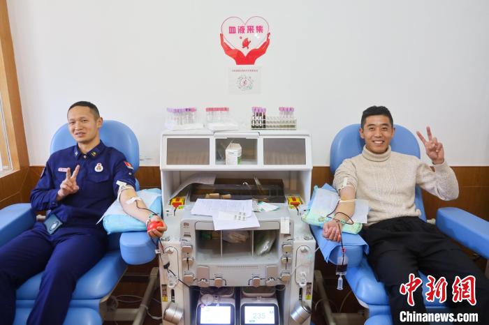 圖為西藏林芝森林消防進(jìn)行獻(xiàn)血。王澤棟 攝