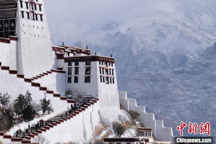 1月16日,西藏拉薩迎來2024年首場降雪,圖為民眾途經(jīng)雪后的布達(dá)拉宮廣場。江飛波 攝